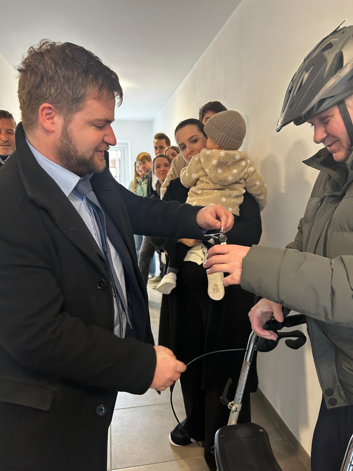 Nach einem kurzen Baubericht durch den Geschäftsführer der GEWOG Neues Heim, DI Bernd Klocker, erfolgte die persönliche Übergabe an die neuen Bewohnerinnen und Bewohner.