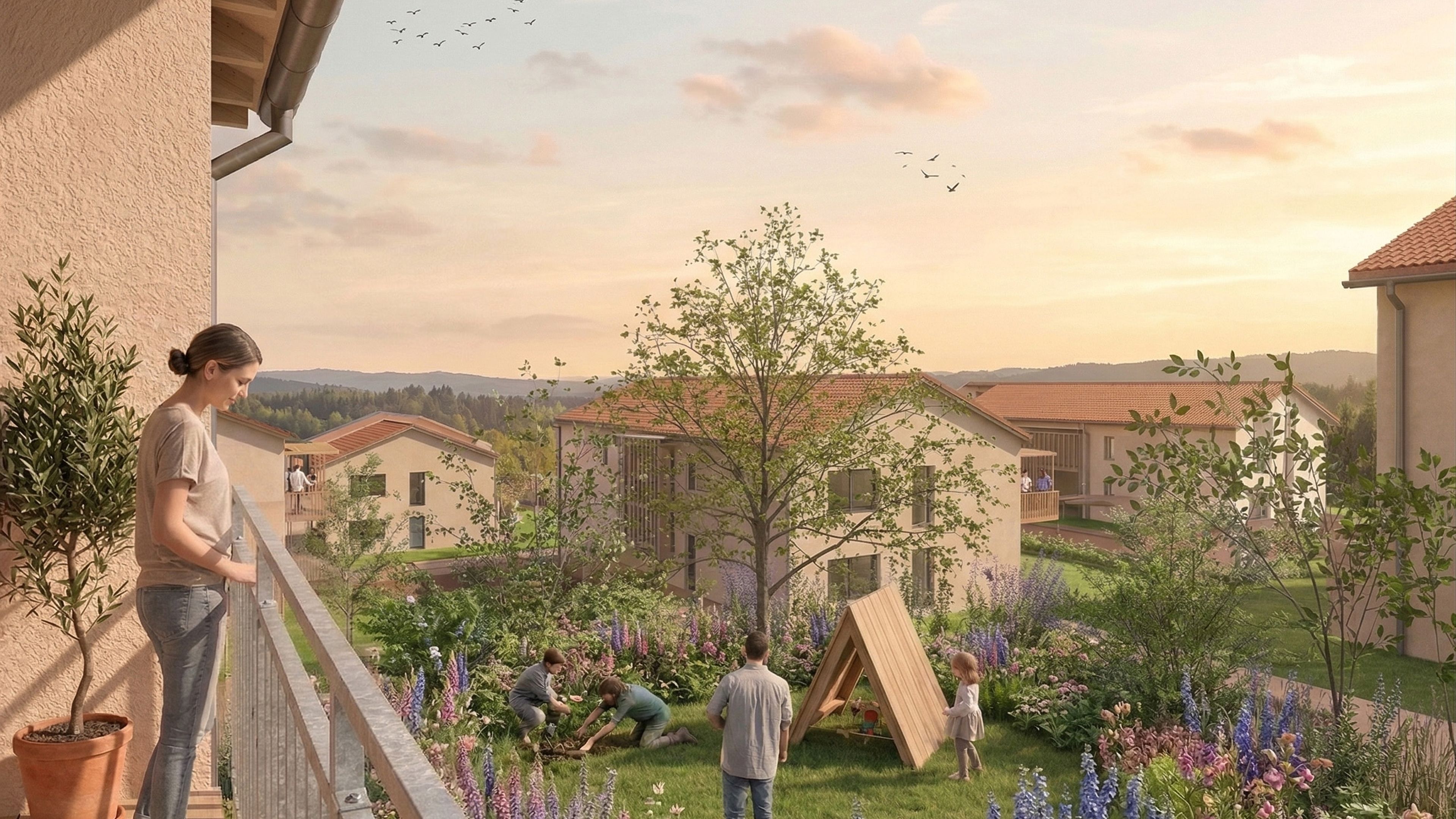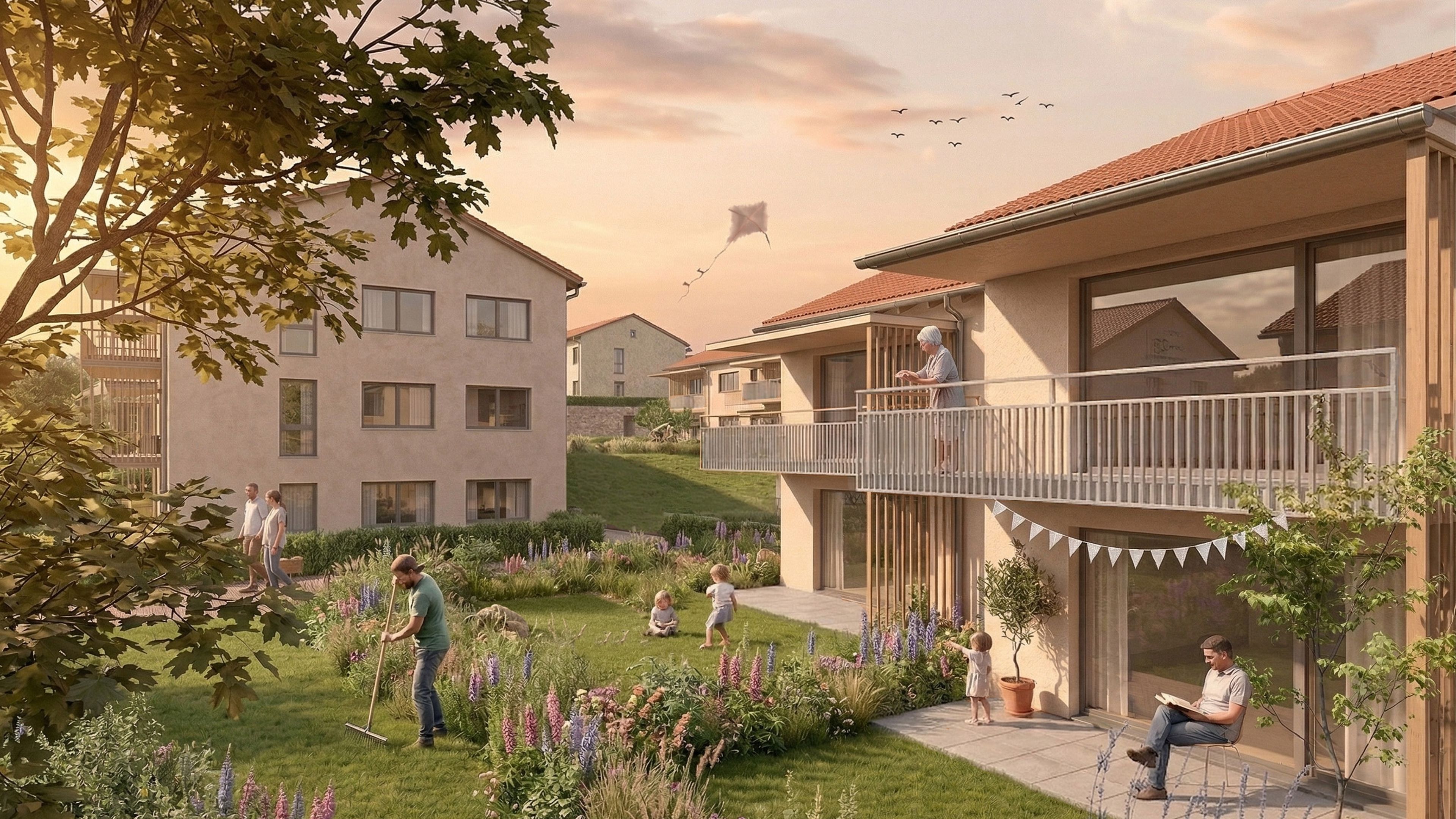 Das Projekt besteht aus vier Häusern mit 28 Wohnungen. Die Wohnungen zeichnen sich durch ihre optimale Raumaufteilung und ökologische Bauweise aus. Die Beheizung erfolgt über Fernwärme mit Biomasse und sorgt somit für ein nachhaltiges Wohnen. Zwischen rd. 55 und rd. 74 Quadratmeter bieten wir 2- und 3-Zimmer-Wohnungen an. Jeder Wohnung ist ein PKW-Abstellplatz in der Tiefgarage zugeordnet. Zusätzlich stehen Besucherparkplätze im Freien zur Verfügung.