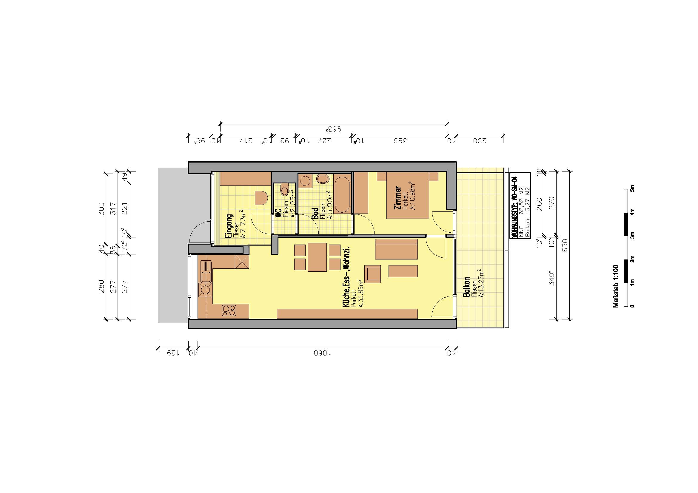 Bad, Balkon, Garderobe, Kellerabteil, Schlafzimmer, Wohnen/Essen/Küche, WCStockwerk