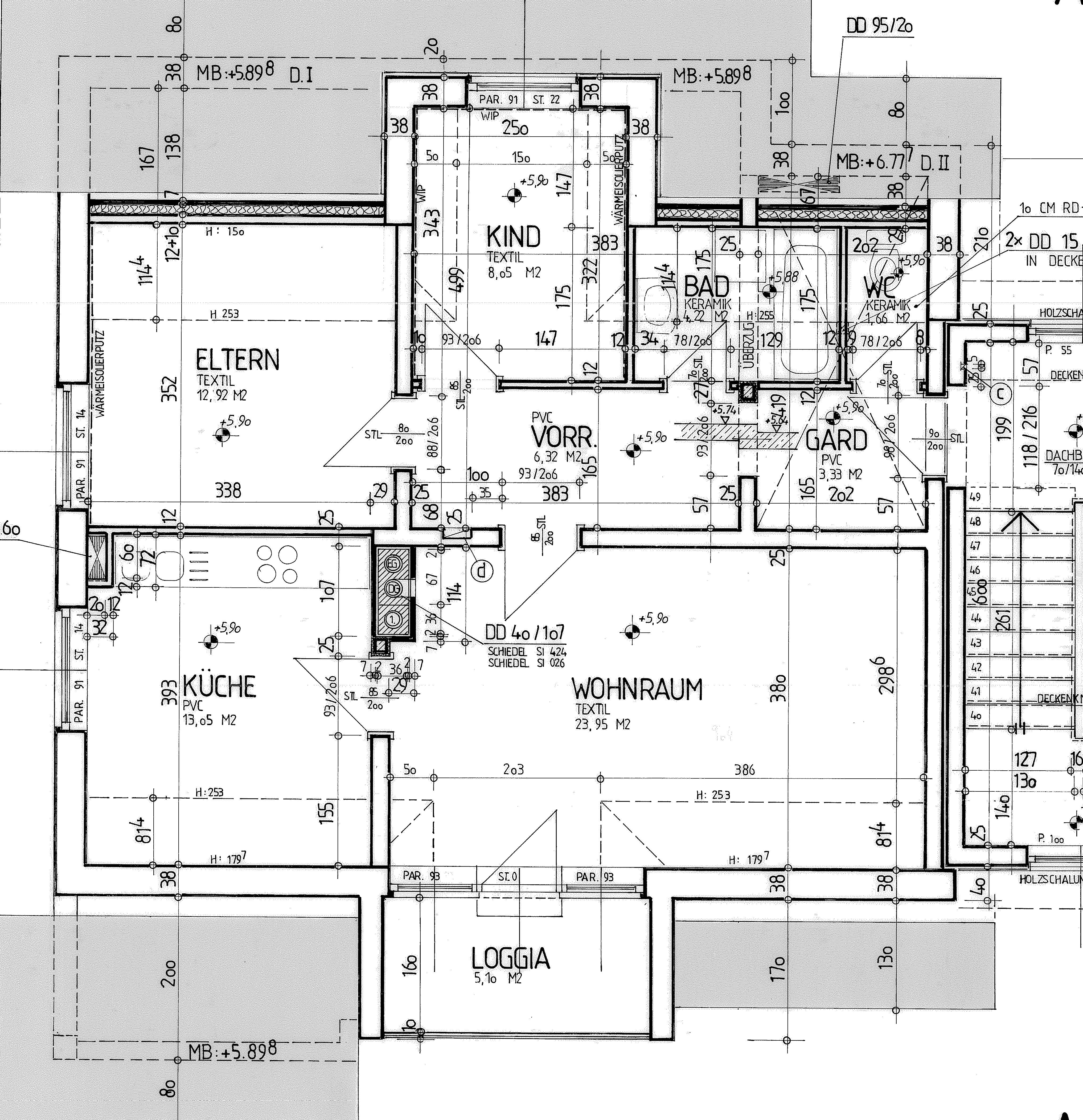 Bad, Carport, Garderobe, Kellerabteil, Kinderzimmer, Küche, Loggia, Schlafzimmer, Vorraum, WC, WohnzimmerStockwerk
