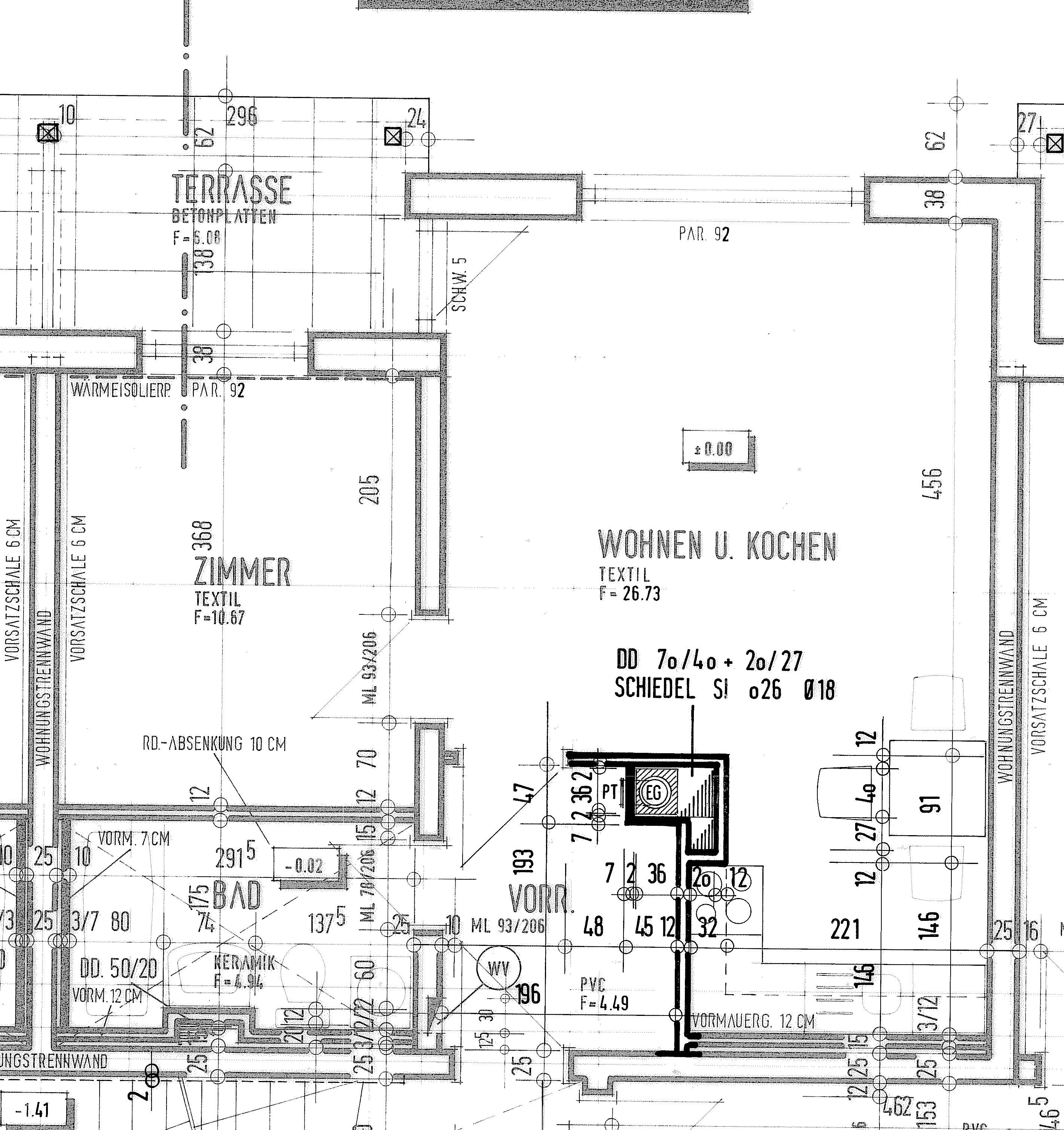 Bad/WC, Kellerabteil, Kochnische, Schlafzimmer, Terrasse, Vorraum, WohnzimmerStockwerk