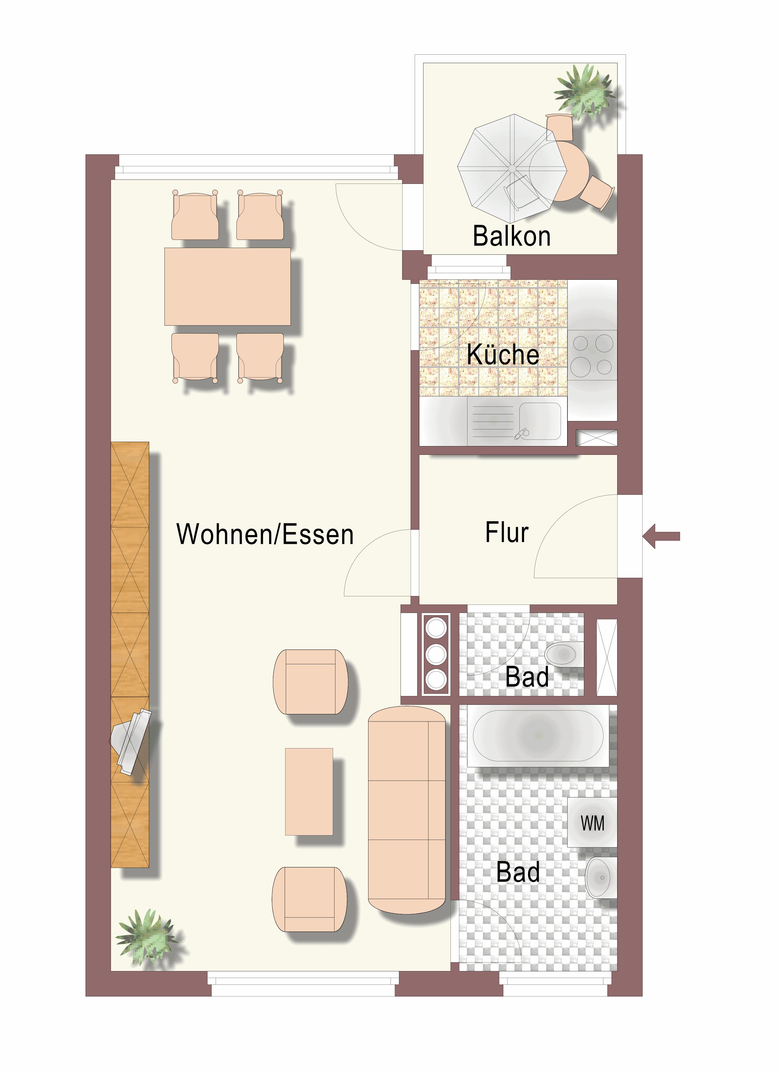 GRÖßE 54,42 m2 2 Zimmer
