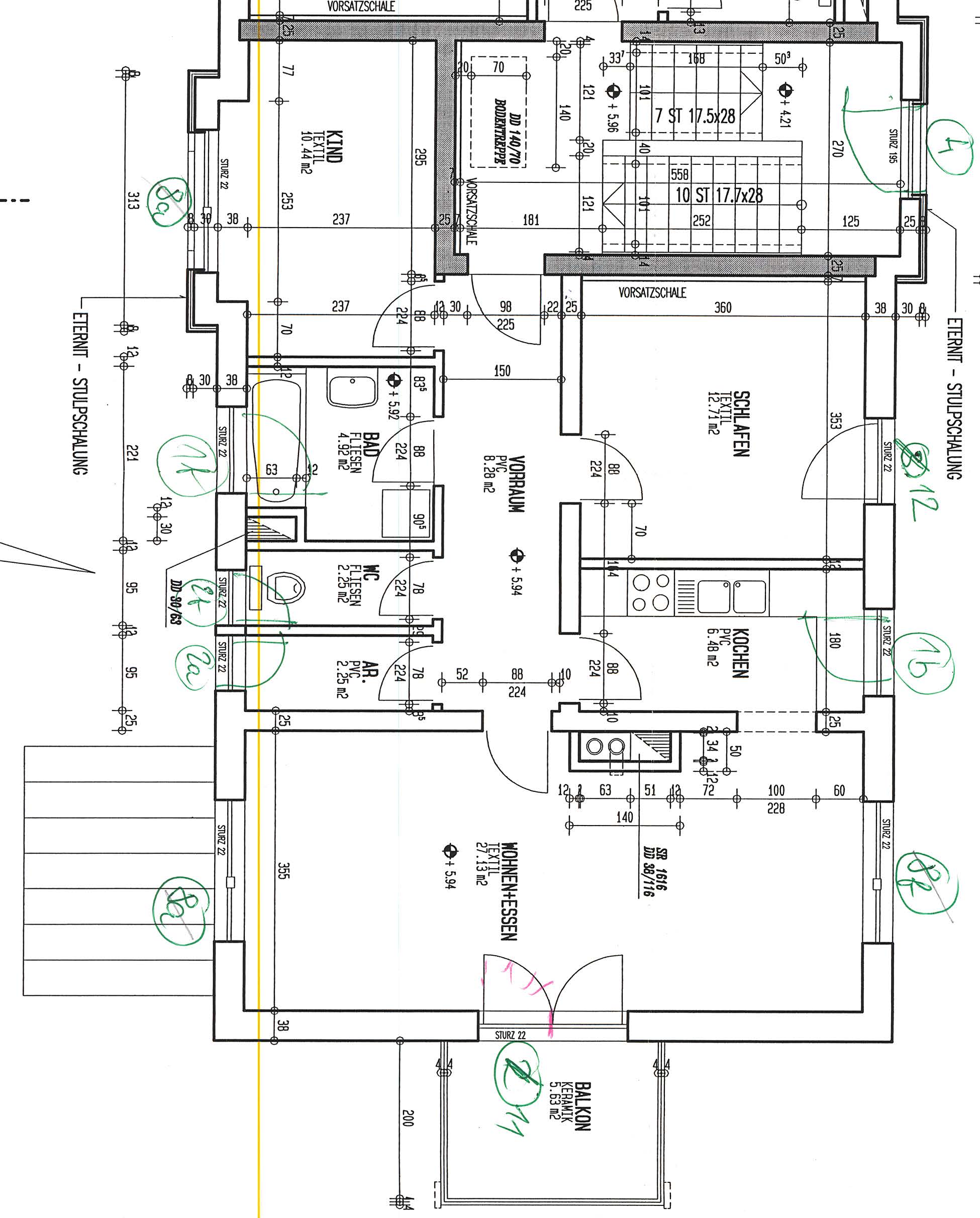 Abstellplatz, Abstellraum, Bad, Balkon, Kellerabteil, Kinderzimmer, Küche, Schlafzimmer, Vorraum, WC, Wohn/EsszimmerStockwerk