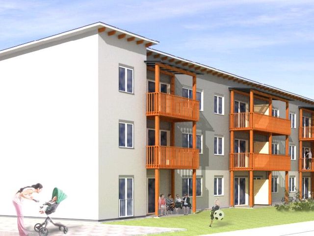 Die barrierefreie 2-Zimmer-Seniorenwohnung befindet sich im Erdgeschoss und verfügt über eine sonnige Terrasse. Das Wohnhaus ist mit einem Personenaufzug ausgestattet. Seniorenwohnungen können ab dem 55. Lebensjahr angemietet werden.