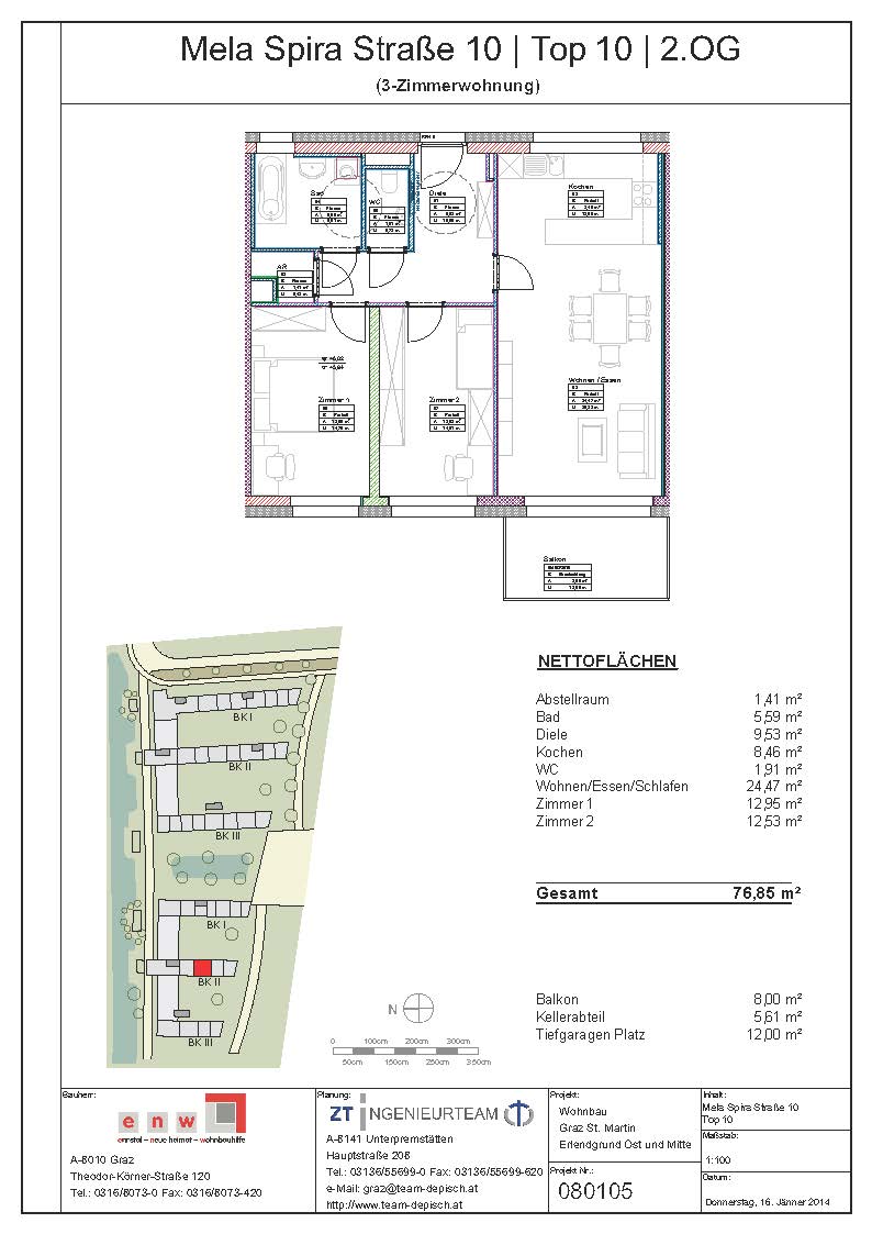 Abstellraum, Bad, Balkon, Diele, Kellerabteil, Kinderzimmer, Küche, Schlafzimmer, Tiefgaragenabstellplatz, WC, Wohn/EsszimmerStockwerk