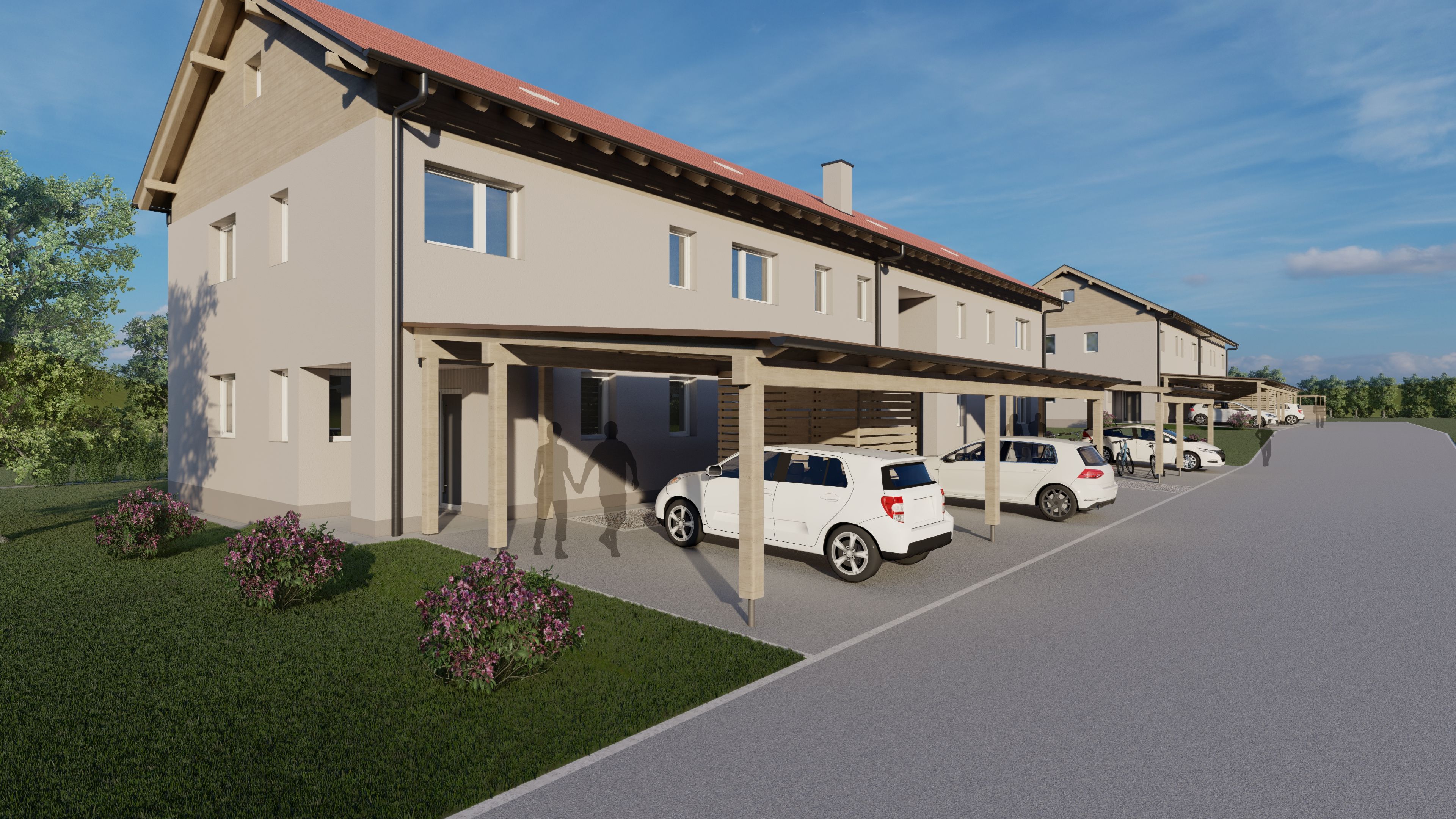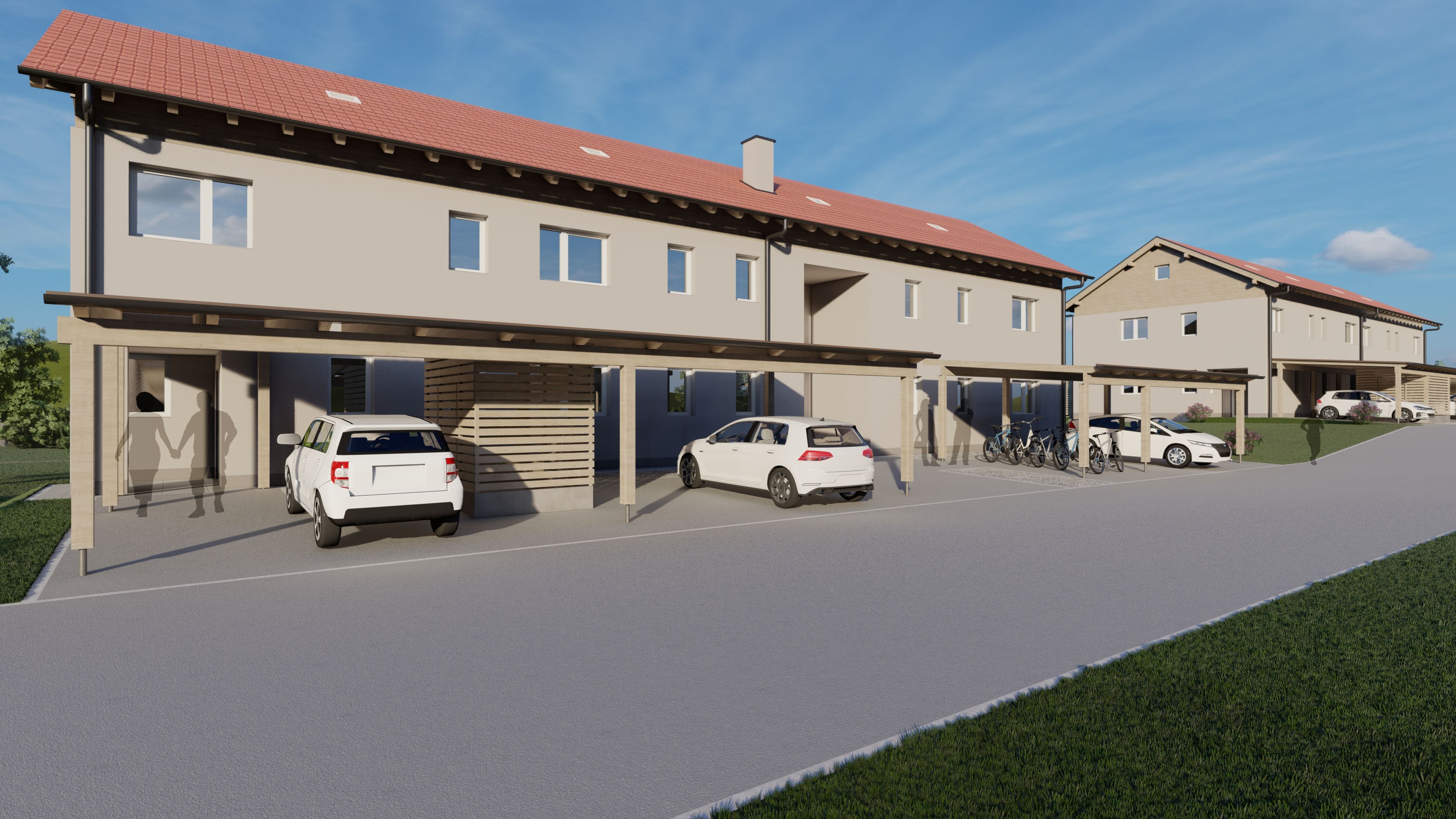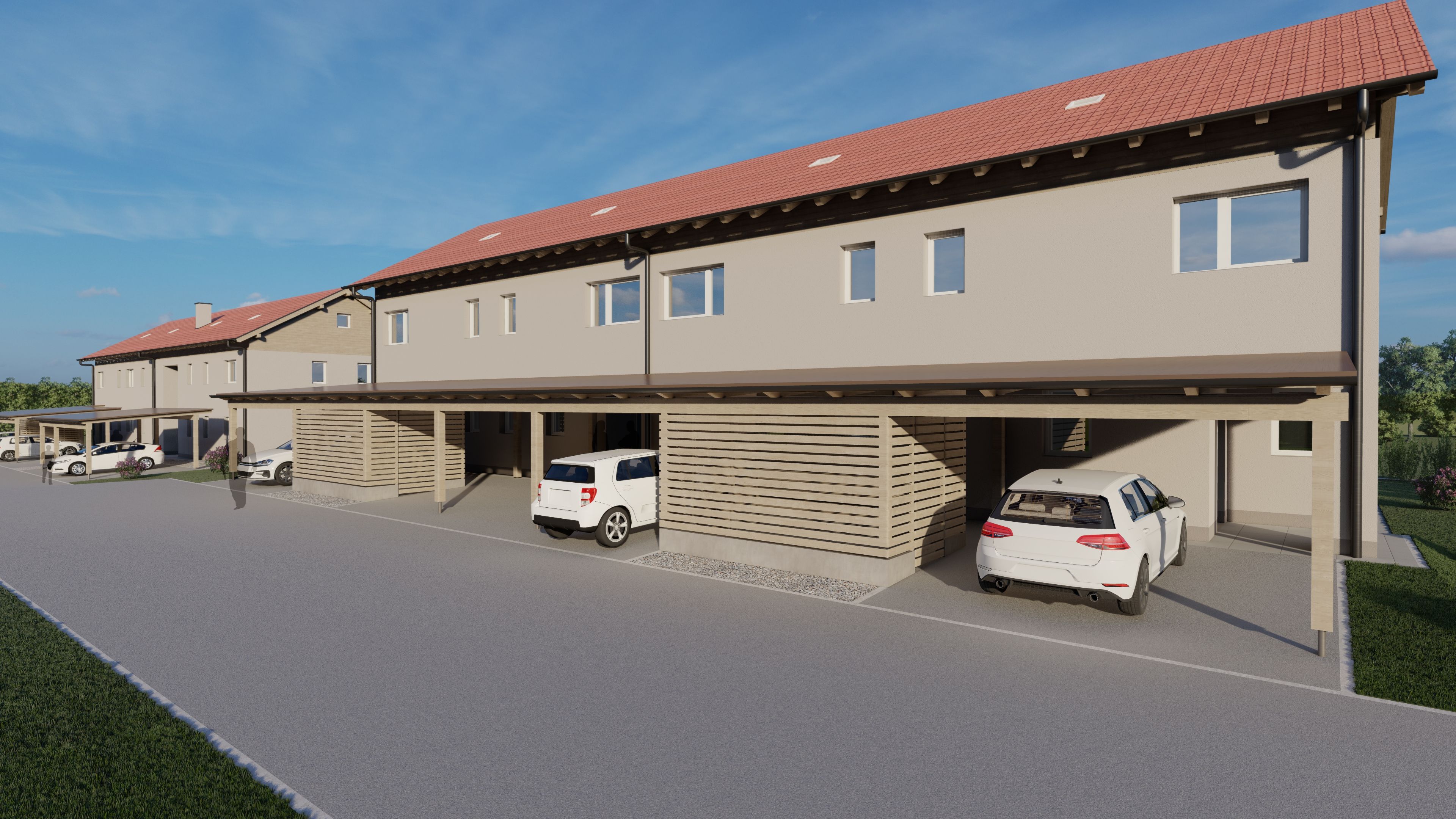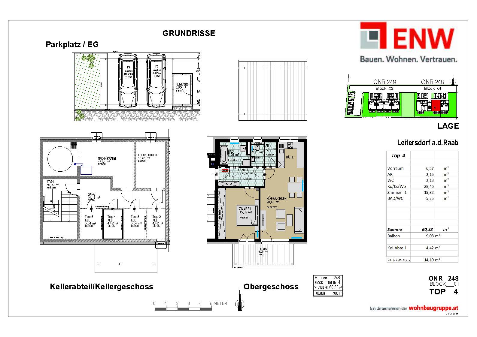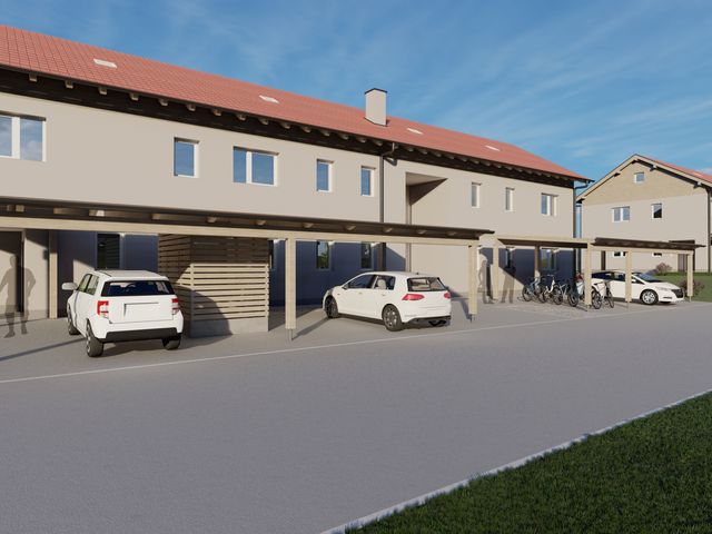 Abstellraum, Bad, Balkon, Carport, Kellerabteil, Schlafzimmer, Vorraum, WC, Wohnen/Essen/KücheStockwerk