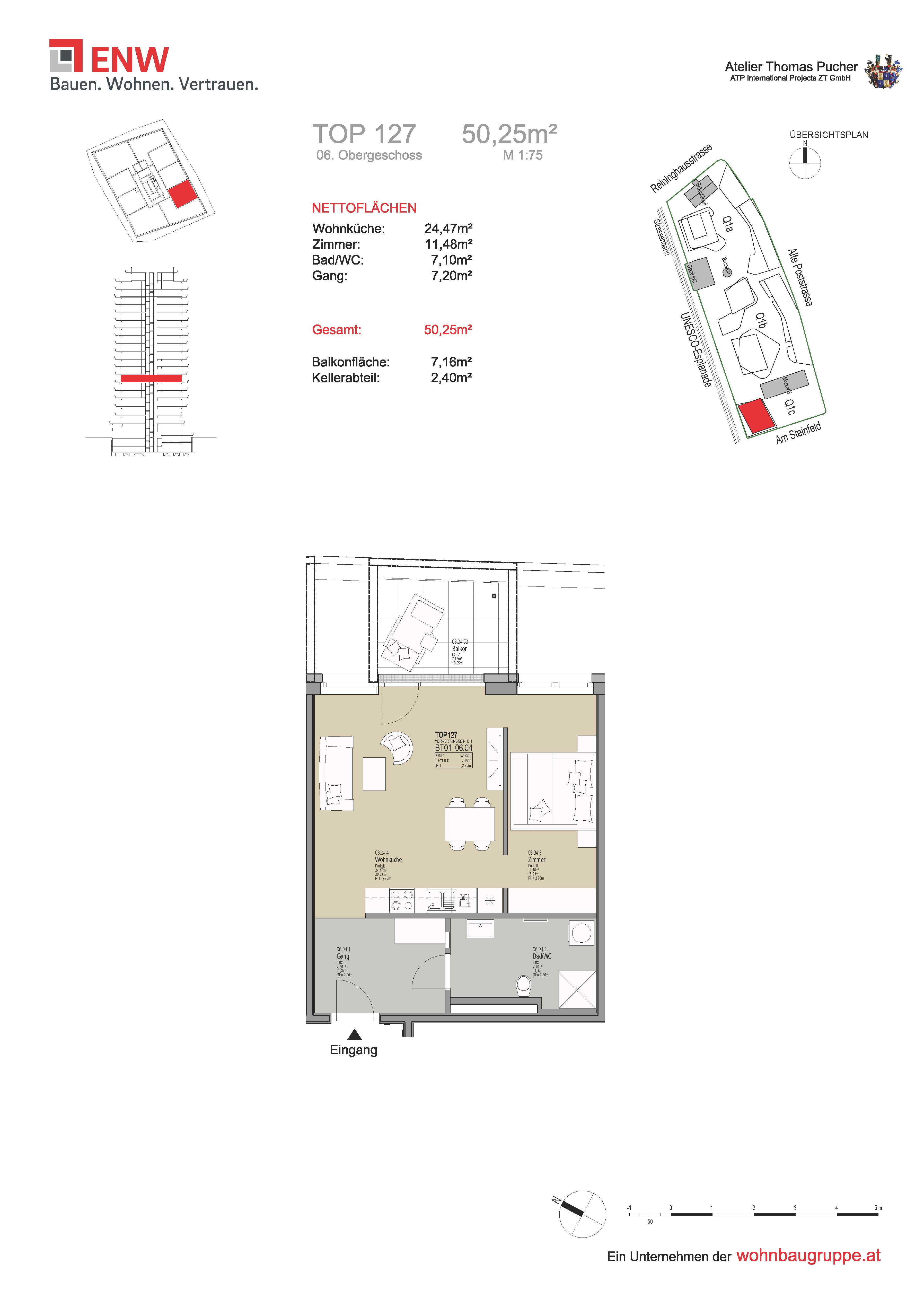 Bad/WC, Balkon, Gang, Kellerabteil, Schlafzimmer, WohnkücheStockwerk