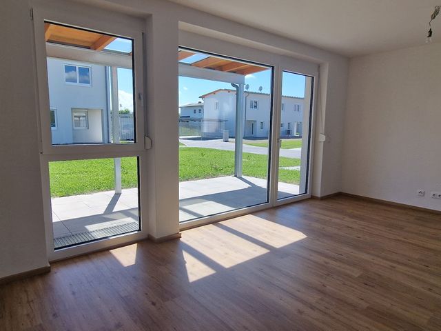 Am Stadtrand vom Braunau am Inn wurde von der GEWOG Neues Heim acht freifinanzierte, familienfreundliche Doppelhaushälften im Eigentum oder in Miete mit Kaufoption errichtet. Das Haus ist schlüsselfertig ausgestattet, lediglich die Möbel sind selbst beizubringen.Vom Erdgeschoss aus betritt man die Terrasse mit angrenzendem Gartenanteil, für zusätzlichen Stauraum sorgt eine Gartenbox, die auf der Terrasse platziert ist. Die Wärmeversorgung der Wohnanlage erfolgt mittels Luft/Wasser-Wärmepumpen. Die Heizkosten sind vom Käufer selbst abzuführen. Für den ruhenden Verkehr gehört je Haus einen Carport-Abstellplatz und einen PKW-Abstellplatz. Kosten für Kauf - und/bzw. Eigentumsvertrag sowie Grundsteuer und Eintragungsgebühr sind vom Käufer zu tragen. Der Kaufpreis ist entweder binnen 14 Tagen nach Vertragsunterfertigung zur Zahlung fällig oder Sie zahlen 50% nach Vertragsunterzeichnung und den Restbetrag zinsenfrei nach 3 Jahren.