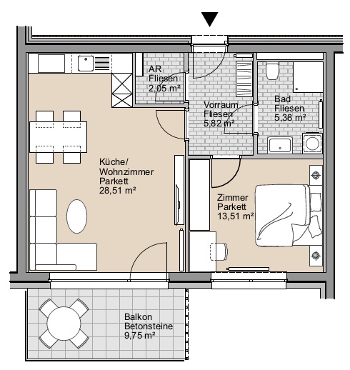 GRÖßE 55,28 m2 2 Zimmer