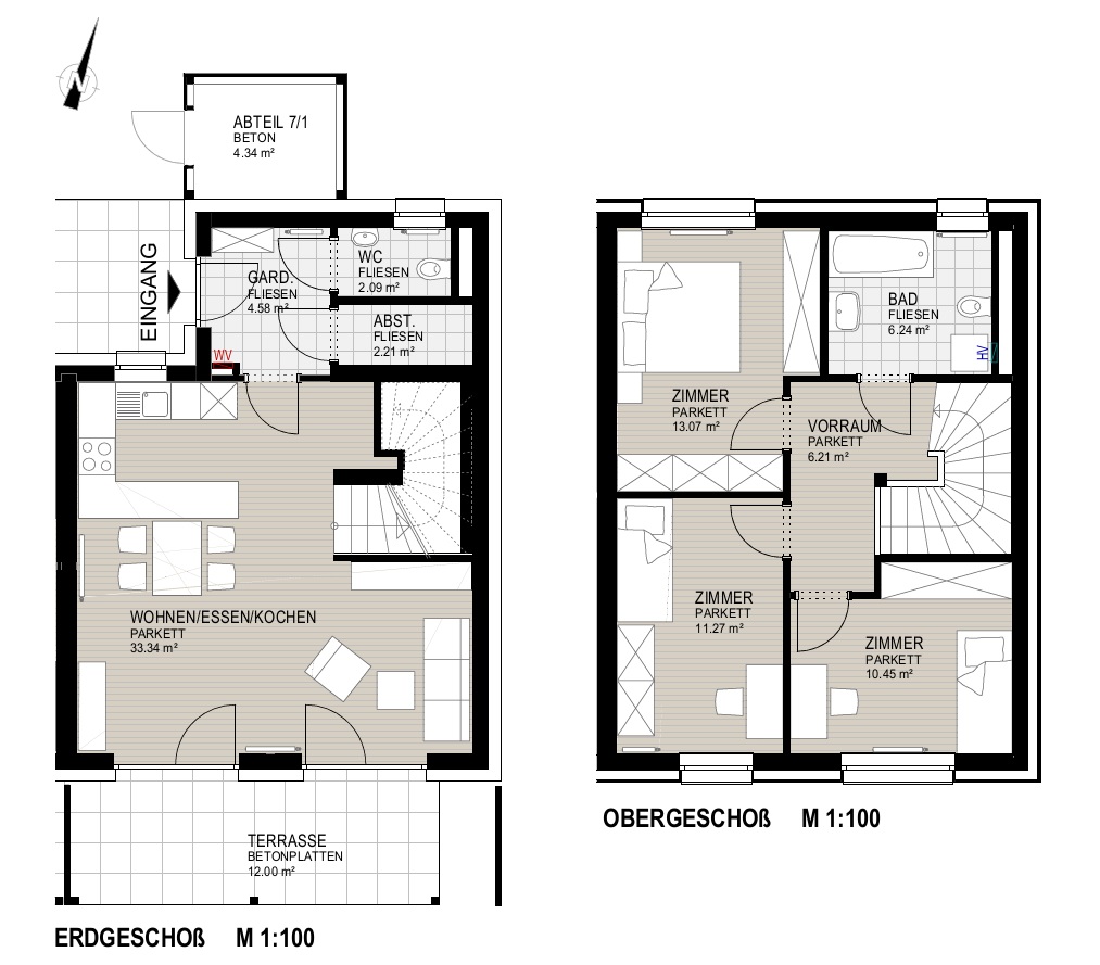 Garten, Garten, Kinderzimmer, Kinderzimmer, Abstellraum, Bad, Carport, Garderobe, Kellerersatzabteil, Schlafzimmer, Terrasse, Vorraum, WC, Wohnen/Essen/KücheStockwerk
